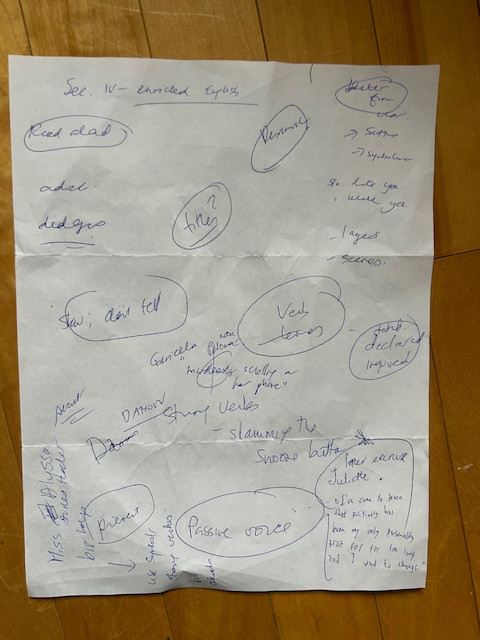 More proof that this was an unusual group: we did a word exercise -- writing a list of words that begin with the letter H (in honour of Herb, our eldest participant who is mighty spry and with-it for 79!) ... and two people came up with the word "hitherto" (one was Herb); two people came up with "harbinger" (it's a lovely word to say, don't you agree?) and THREE people came up with "happenstance." Happenstance is a gorgeous word, with a lovely meaning and three is a lot of people in one group to come up with what I consider to be a rather unusual word.