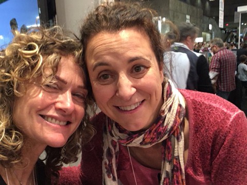 In the next pic, I'm with someone very special to me -- my friend, the incredibly talented Quebecoise illustrator Genevieve Despres. I was hoping we'd cross paths at the salon. I was there on Friday, then again today. And just as I was leaving this afternoon, someone called my name and it was Geneviève. (That's why I look so happy in the next pic.)